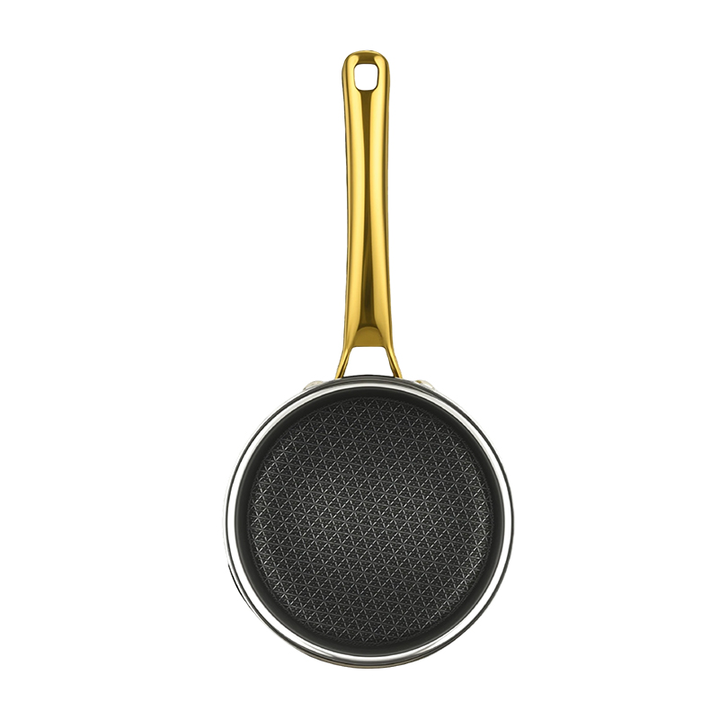 2. على وجه التحديد، الاستقرار الهيكلي للتشطيب المطروق، وخاصية عدم الالتصاق المتميزة لطلاء قرص العسل المحفور، ومقاومة التآكل والسلامة البشرية، بالإضافة إلى الجماليات الأنيقة للمقبض المصنوع من الفولاذ المقاوم للصدأ المطلي بـ PVD—، كل هذه السمات تعمل في وئام لتحقيق توازن مثالي بين التطبيق العملي والسلامة الصحية والجاذبية البصرية.