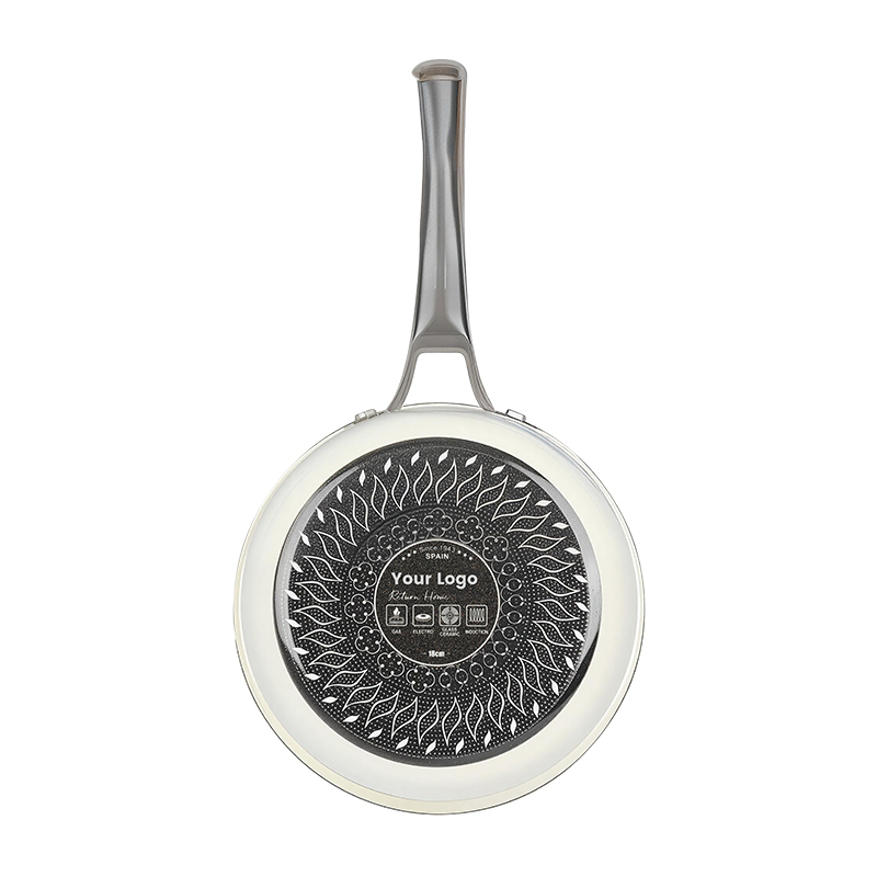 يمكن أيضًا تشطيب القاعدة الخارجية لهذا المنتج بنمط شبكي محفور، مما يعزز التوصيل الحراري بشكل كبير لتسخين أكثر كفاءة وتوحيدًا أثناء الطهي. علاوة على ذلك، يضمن تصميم القاعدة الشبكية المحفورة بقاء المقلاة مستقرة ويمنع الانقلاب أثناء الاستخدام. تدعم كل من القواعد الداخلية والخارجية لهذه المقلاة طباعة الشعار المخصص الحصري، مما يتيح لك عرض هوية علامتك التجارية بشكل بارز.